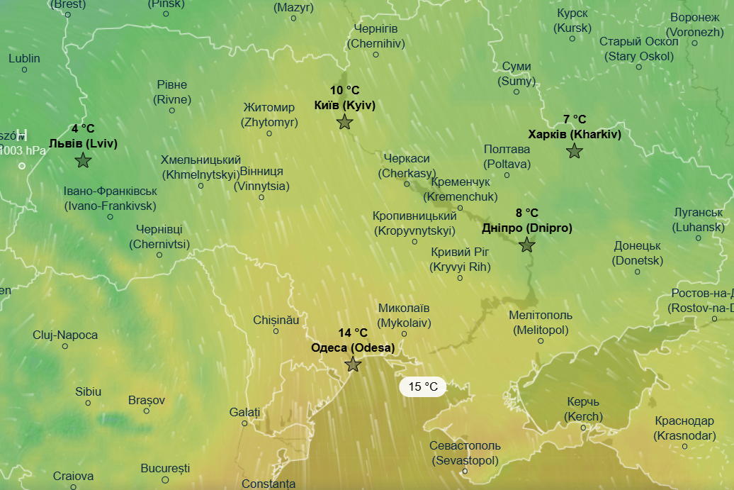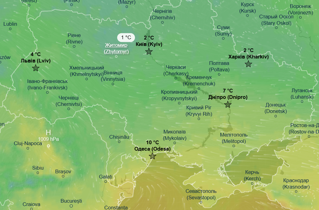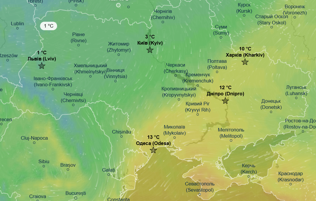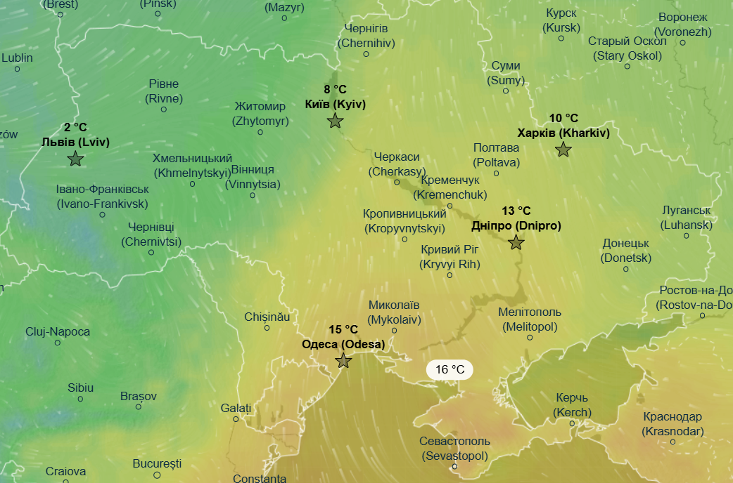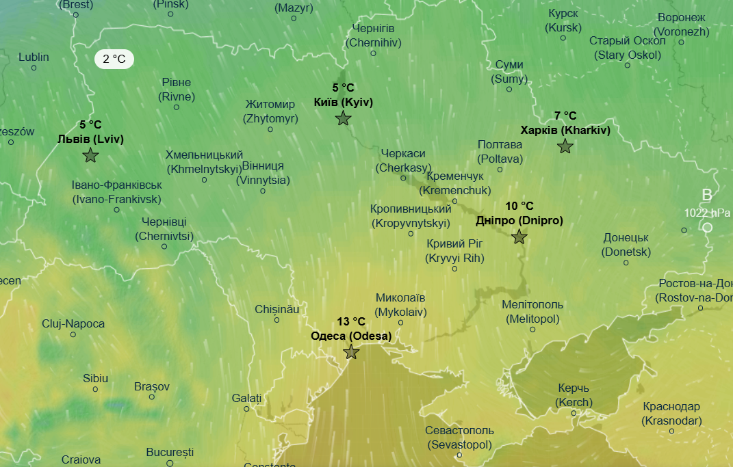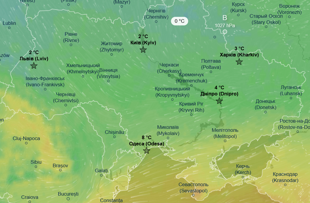 Днем ожидается от +2 до +4 градусов почти на всей территории Украины, немного теплее еще будет в Одесской области и в Запорожской области - до +8 градусов.