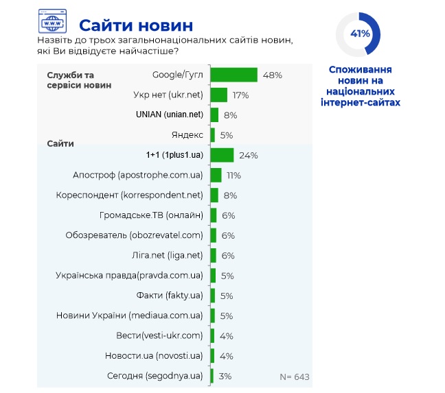 Так, 11% опрошенных респондентов назвали издание "Апостроф" сайтом новостей, который они посещают чаще всего.