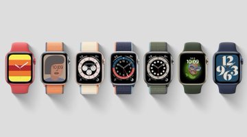 Линейка из 4 цветов: синий, золотой, графитовый и красный. Чип Apple 6-го поколения на базе A13 Bionic (на 20% быстрее, чем Series 5). Коллекция новых циферблатов. Новые растягивающиеся ремни.