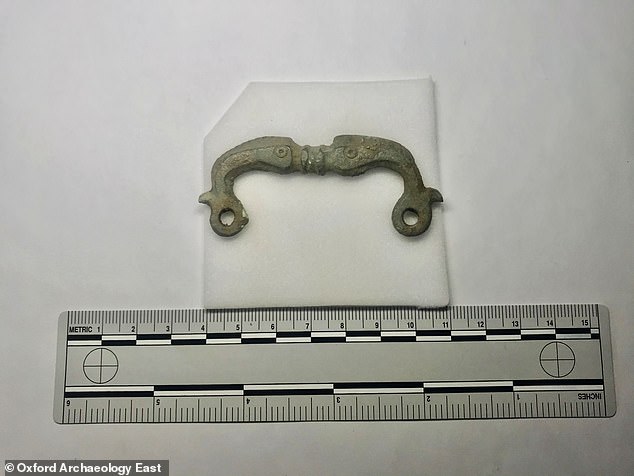 Декорированная пряжка из медного сплава с изображением двух дельфинов по бокам, олицетворяющих связь с богами моря, Нептуном и Океаном, найденная на этом месте, отображает моду и вкус того времени.