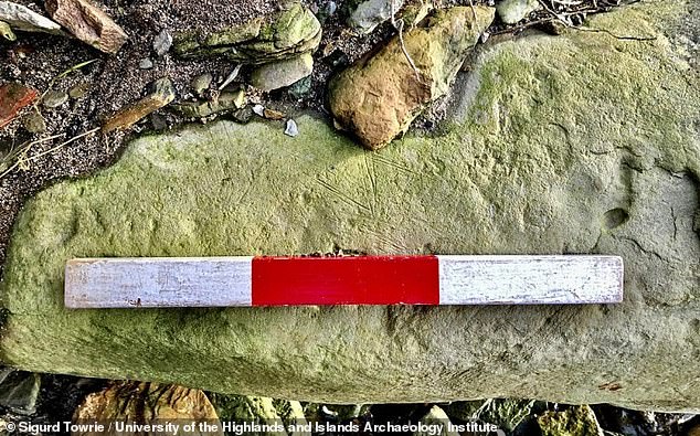 На новом месте были обнаружены оленьи рога, зуб кабана, челюсть крупного рогатого скота и большой украшенный камень, возраст которого около 5000 лет. На камне ученые обнаружили пару надрезанных треугольников и серию прямоугольных полос, проходящих по поверхности.