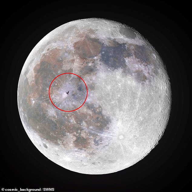 МКС на момент съемки зафиксирована на фоне кратера Коперника. Этот лунный кратер виден немного на северо-запад от центра полушария Луны, обращенного к Земле.