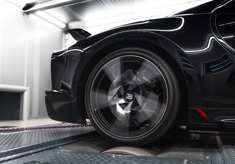 На скорости420 км/ч шины Chiron вращаются со скоростью более 50 раз в секунду. Машина оснащена 8,0-литровым двигателем. Ее мощность - 1596 л.с. (1190 кВт/1618 л.с.) и 1600 Нм крутящего момента.