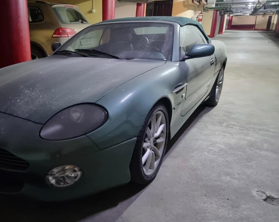 В столице Украины на старом паркинге обнаружили редкий кабриолет Aston Martin DB7 Vantage Volante 2003 года выпуска.