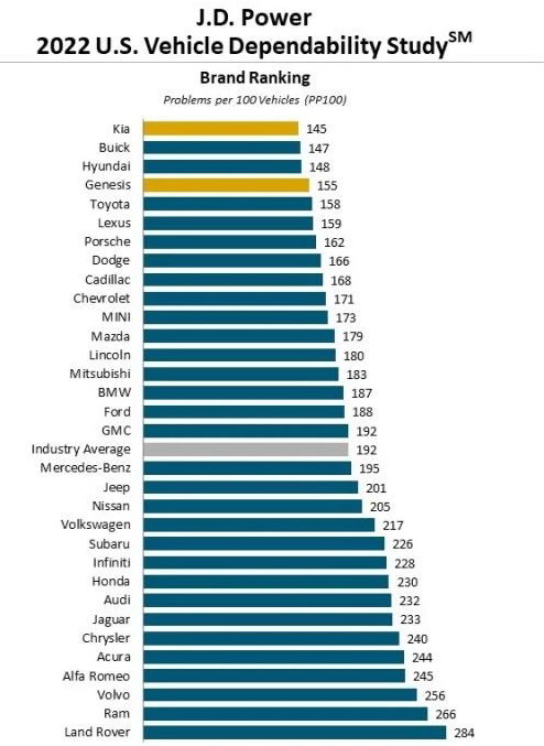 Так, пальму первенства впервые получила марка Kia со 145 жалобами на 100 автомобилей. Также в тройку лидеров вошли марки Buick – на него пожаловалось 147 автовладельцев, и Hyundai с 148 поломками на сотню авто.