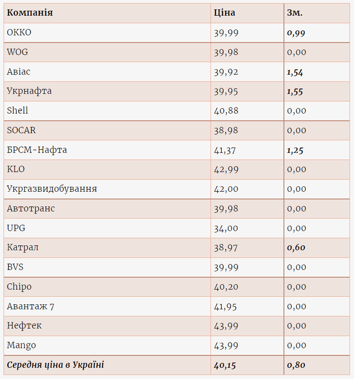 На станциях ОККО и "БРСМ Нафта" автогаз подорожал на 0,99 грн/л и 1,25 грн/л, до 39,99 и 41,37 грн/л соответственно.