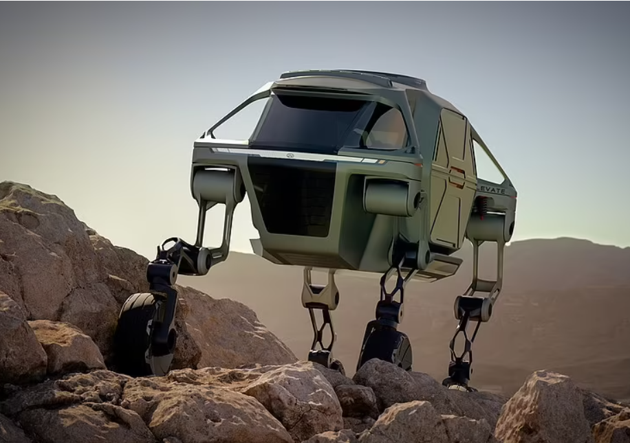 Концепция Elevate, напоминающая шагоходы All Terrain Armored Transport (AT-AT) из вселенной "Звездных войн", включает традиционное колесо и ногу, раскладывающуюся на сложной и опасной местности.