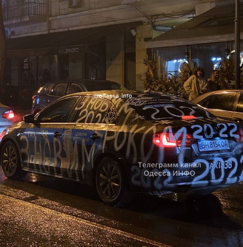 На улицах Одессы заметили расписанный по случаю Нового года автомобиль.