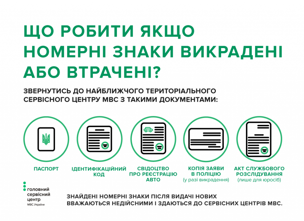- в случае кражи - справку о потере номерных знаков, выданную в Нацполиции