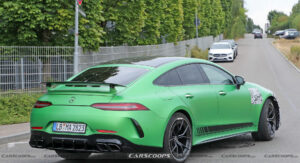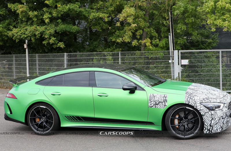 Очевидно, что 4-дверный прототип оснастили аэродинамическим пакетом AMG, включающим, среди прочего, фиксированное заднее антикрыло, оптимизированный диффузор и увеличенный передний сплиттер. Если предположить, что это действительно прототип с фейслифтингом, то у серийной модели будет модифицирован задний бампер и обновлены задние фары.