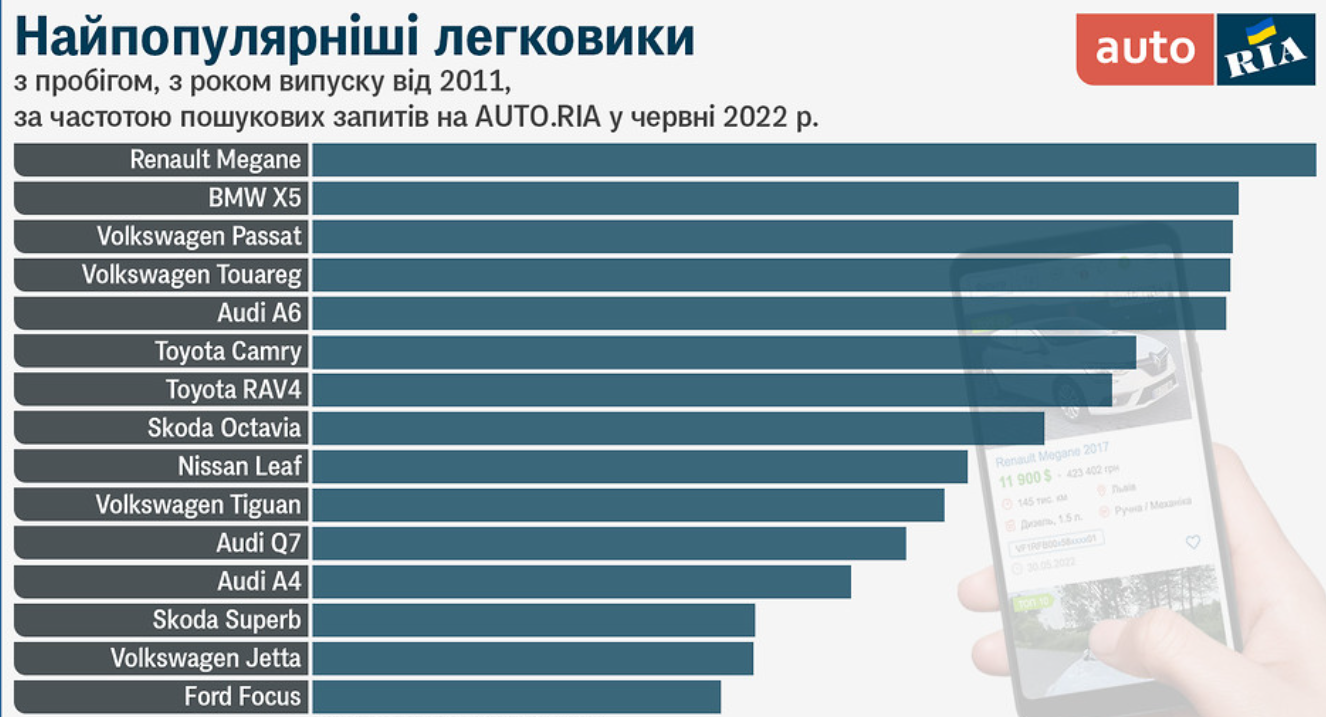 Самым популярным автомобилем с пробегом, с годом выпуска от 2011 и "младше" в Украине в июне стал Renault Megane.