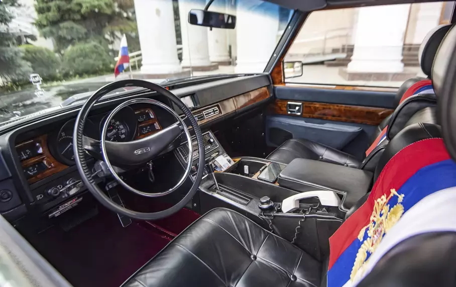За все годы эксплуатации машину ни разу не реставрировали, благодаря чему транспортное средство с 315 лошадиными силами под капотом полностью сохранило еще заводскую комплектацию, которую, впрочем, нарушили флаги и герб РФ.