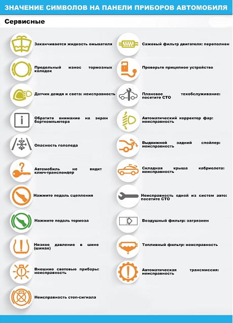 С помощью этих светящихся символов автомобиль способен информировать водителя, к примеру, о состоянии наиболее ответственных систем.