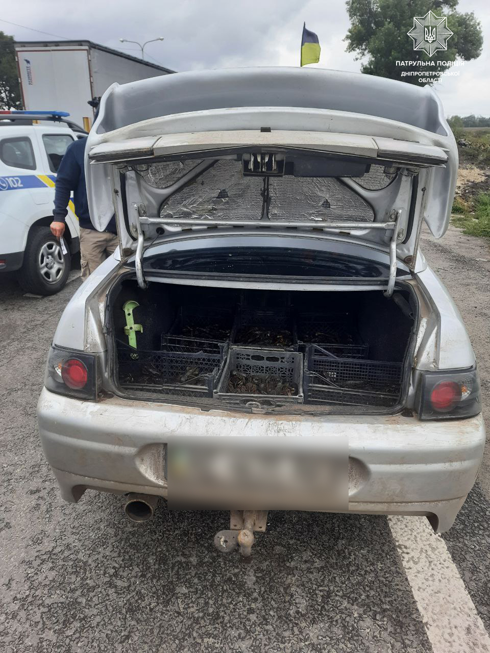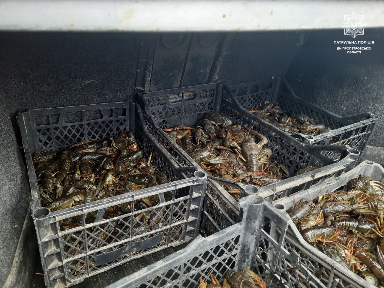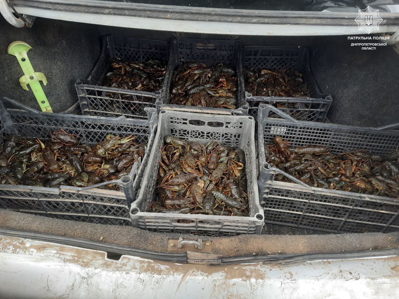 В Днепропетровской области полицейские разоблачили мужчину, который незаконно перевозил ящики со свежевыловленными раками.