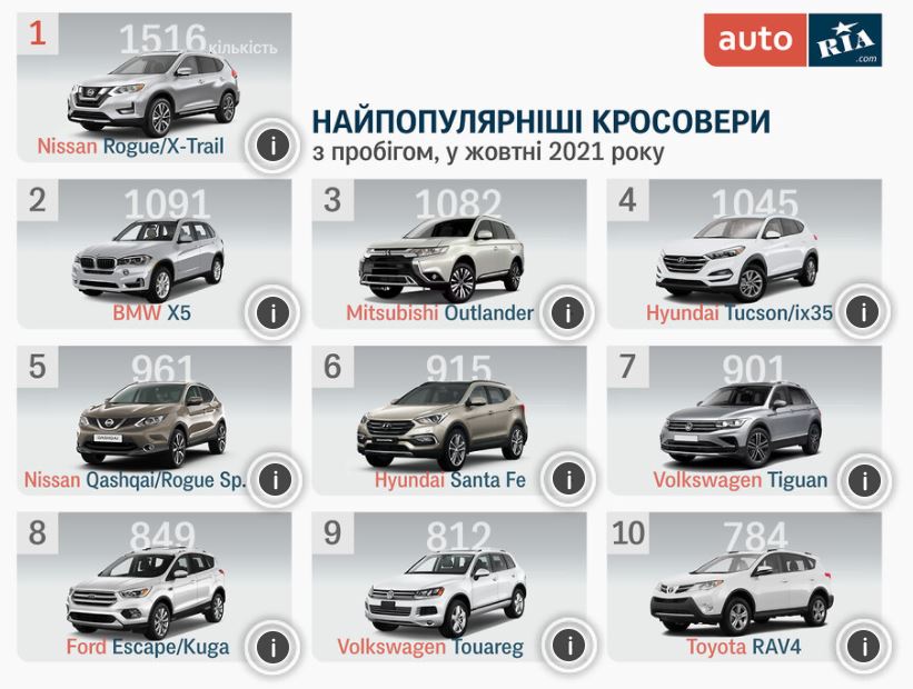 Рейтинг самых популярных в октябре кроссоверов с пробегом составили в AUTO.RIA.