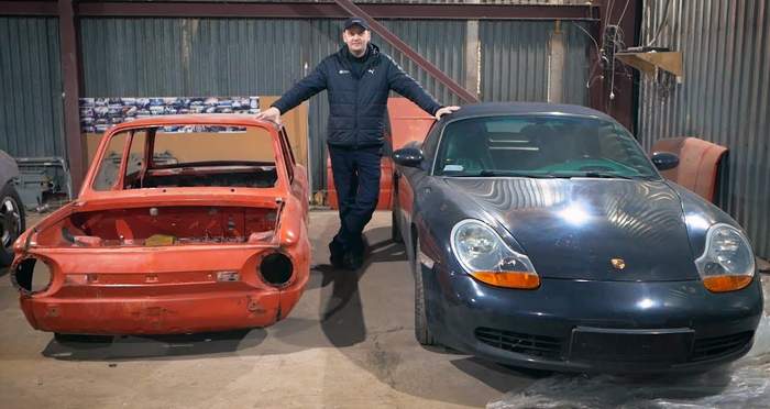 Чтобы совместить "Запорожец" и купе Porsche Boxster автомастерам пришлось расширить кузов ЗАЗ-968 по центральной оси и добавить металл в передние крылья. На такой шаг специалисты пошли, чтобы колесная база и колея немецкого спорткара совпадала с арками "Запорожца".