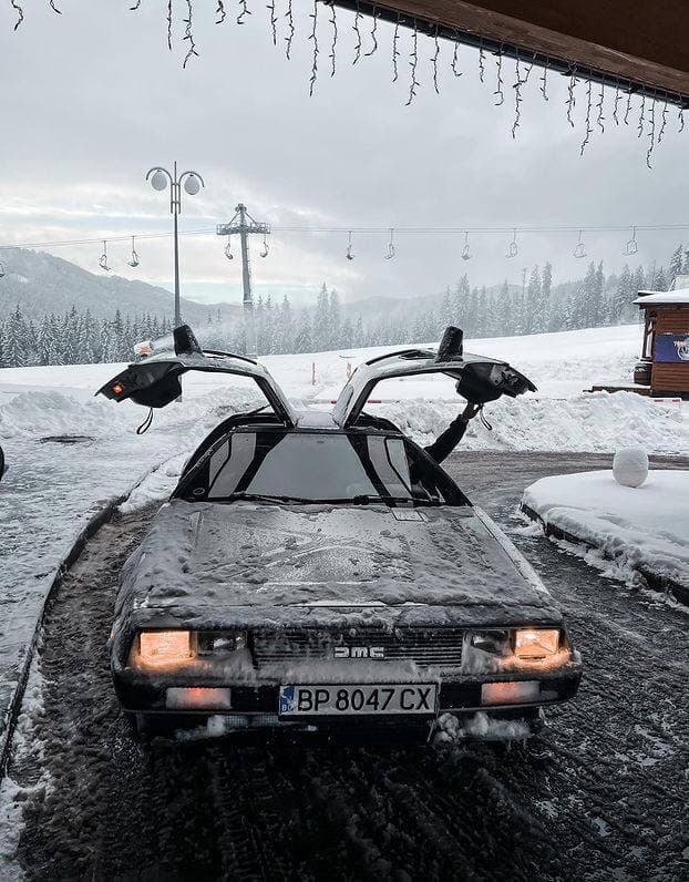 В популярном среди украинцев курорте в Карпатах - Буковеле заметили оригинальный легендарный автомобиль DeLorean DMC-12 из серии фильмов "Назад в будущее".