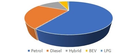 - авто с бензиновыми двигателями – 59% рынка;