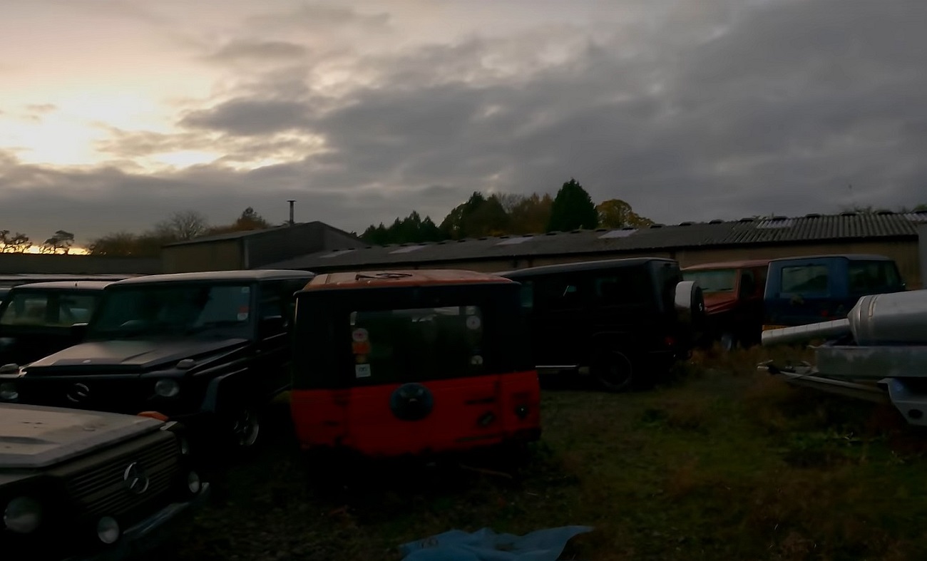 В Великобритании нашли случайно "кладбище" по меньшей мере 20 внедорожников Мерседес G-Class. Они не имели некоторых деталей, хотя и выглядели в хорошем состоянии.