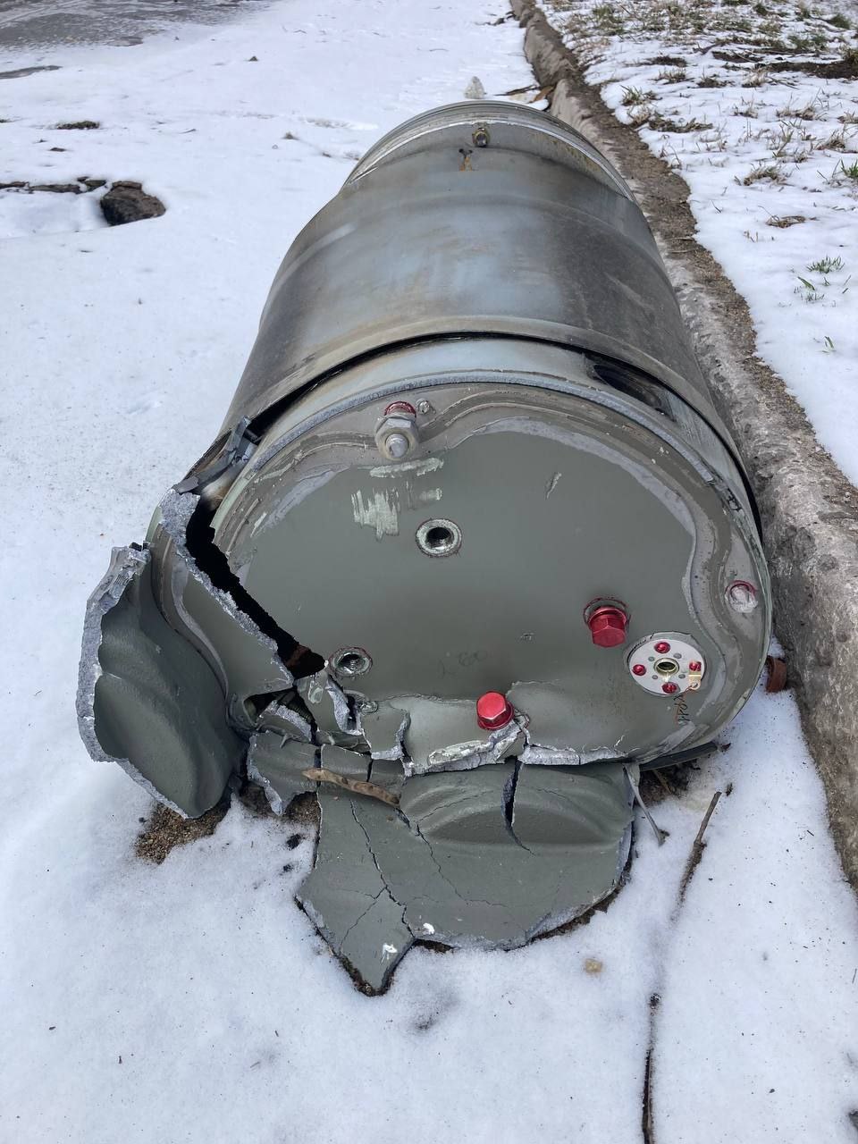"Фрагменты 300мм ракет системы залпового огня "Смерч", которыми россияне непрерывно обстреливают гражданское население Мариуполя и всей Украины.