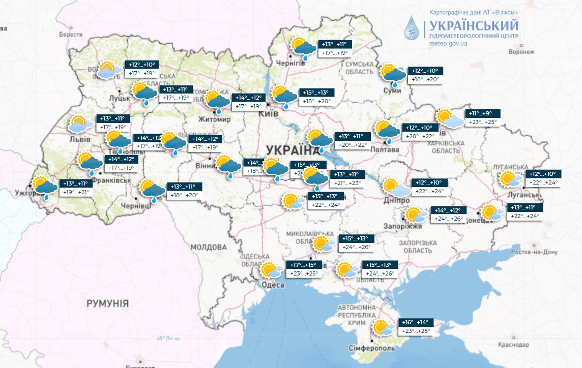 В воскресенье, 1 октября, будет дождь на большинстве областей Украины, а погода будет переменчивой. Температура воздуха существенно снизится по сравнению с прошлыми днями – на западе и севере температура будет колебаться от 18 до 20 градусов. В центре она будет составлять +21-23 градуса, на востоке – 22-24 градуса, а на юге – 24-26 градусов.