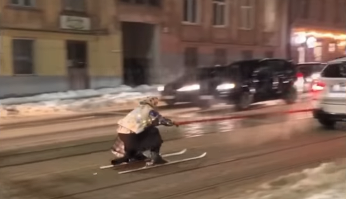 В социальных сетях распространяется видео, в котором бабушка на лыжах прицепилась к автомобилю марки BMW и таким образом катается по улицам Львова, но "зацепером" на самом деле оказался человек "с прошлым".