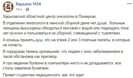 В сети показали ужасающие фото из Харьковского областного центра онкологии в Померках.