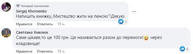 Кто-то пошутил, что стоит издать книгу об "Искусстве жить на пенсию". Впрочем, не все отреагировали на индексацию с юмором. Кто-то заметил несправедливость, что, мол, пенсионерам с наименьшей пенсией прибавили всего 100 гривен, а тому, кто имел довольно приличные пенсионные выплаты, добавили еще 1500 гривен.