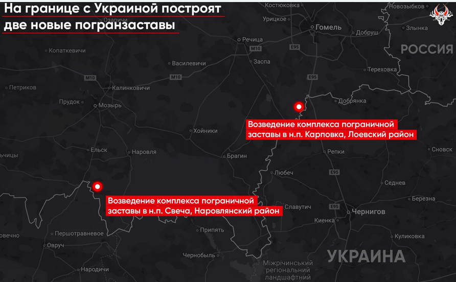 "Раньше для пограничной заставы "Асаревичи" (Брагинский район), частично расположенной на реке Днепр, также начали строить новую инфраструктуру", - отметил OSINT-проект.