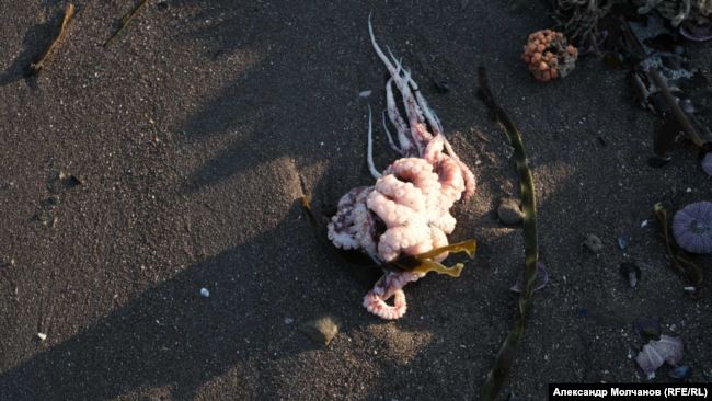 Кристина отметила, что весь Халактырский пляж усеян мертвыми животными. Однако, по ее словам, это глубинные обитатели (морские ежи, осьминоги). Потому версия о повышенном уровне нефтепродуктов ей кажется неправдой, ведь они легче чем вода, а потому держатся на поверхности.