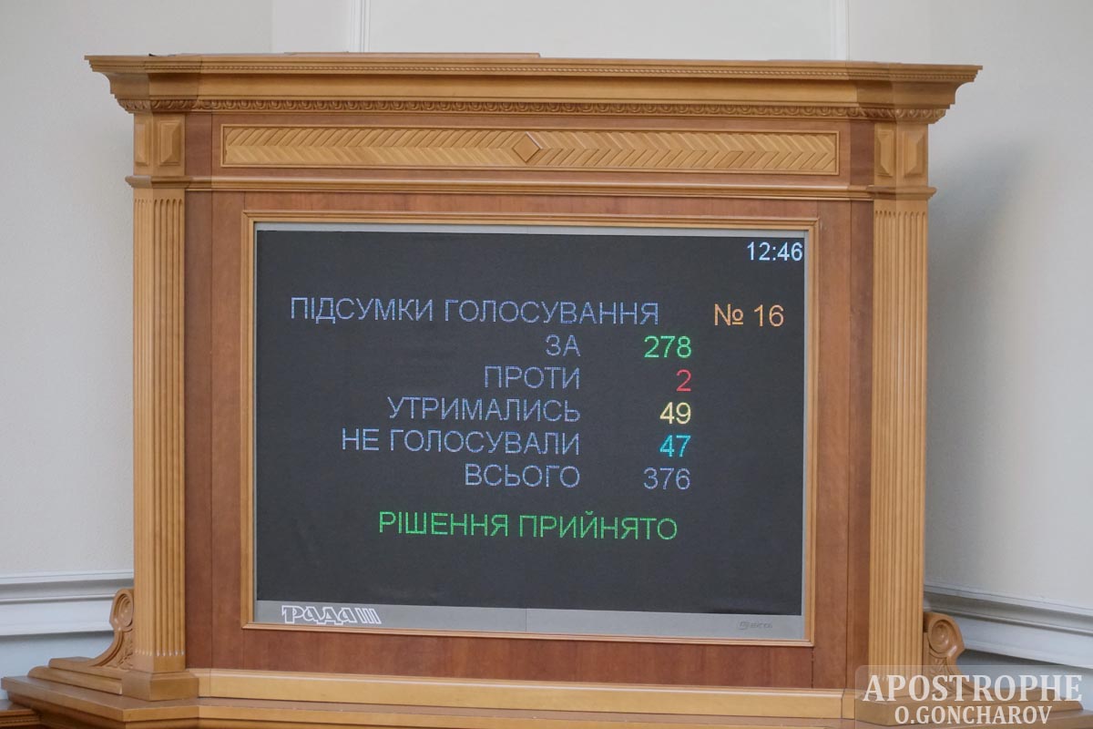"За" проголосовали 278 нардепов.