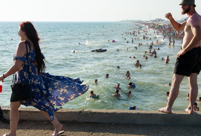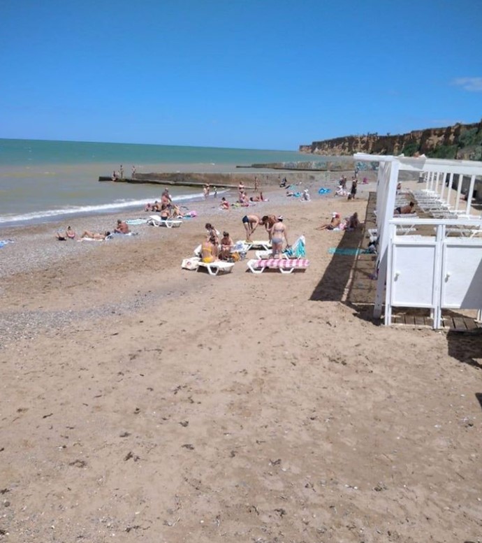 А вот в Новофедоровке возле города Саки судя по фото много отдыхающих, они загорают и купаются на пляже.