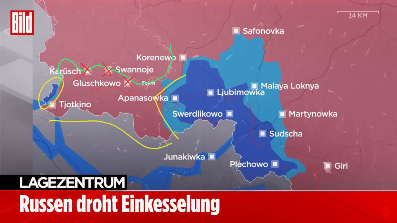 Украинской армии осталось 5 км. до закрытия котла на реке Сейм в Курской области РФ, внутри которого остаются до 3000 российских солдат.