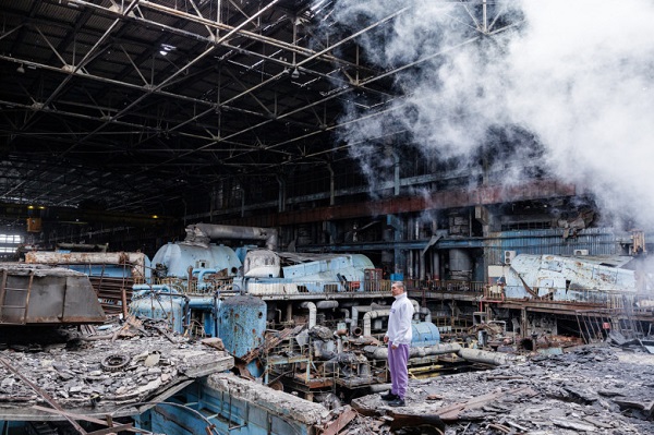 "Во время своего визита на ТЭС Александр Усик символически провел тренировку на разрушенном от обстрелов блочном щите управления, где происходило управление энергоблоком электростанции", - сообщили в ДТЭК.