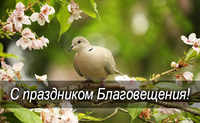 Поздравляю с Благовещением и от души желаю жить благодатно и веровать, не отпускать от сердца добрую надежду и каждый день открывать свои двери для счастья и любви.