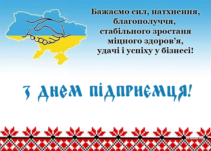 Поздравляю с Днем предпринимателя! Пусть ваш путь развития и процветания будет светлый и чистый. Занимайте ведущие ниши в своей сфере, становитесь лидерами и никогда не сдавайтесь. Здоровья, сил, новых идей, поддержки и огромной прибыли!