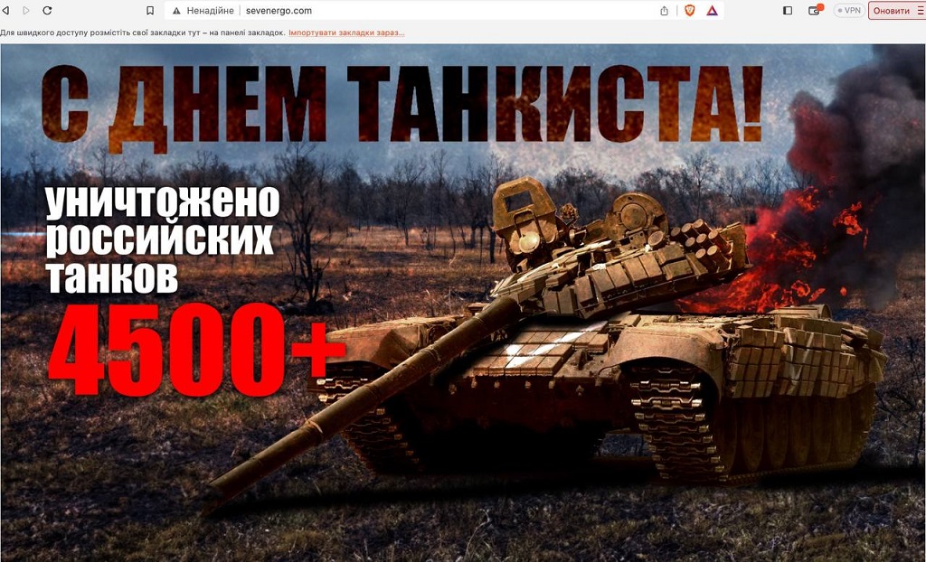 "Изображение с сожженной российской техникой было размещено более чем на 15 сайтах разных предприятий Санкт-Петербурга и Севастополя. Работа продолжается и скоро вся российская федерация будет знать о подлинном "величии" российских танкистов".