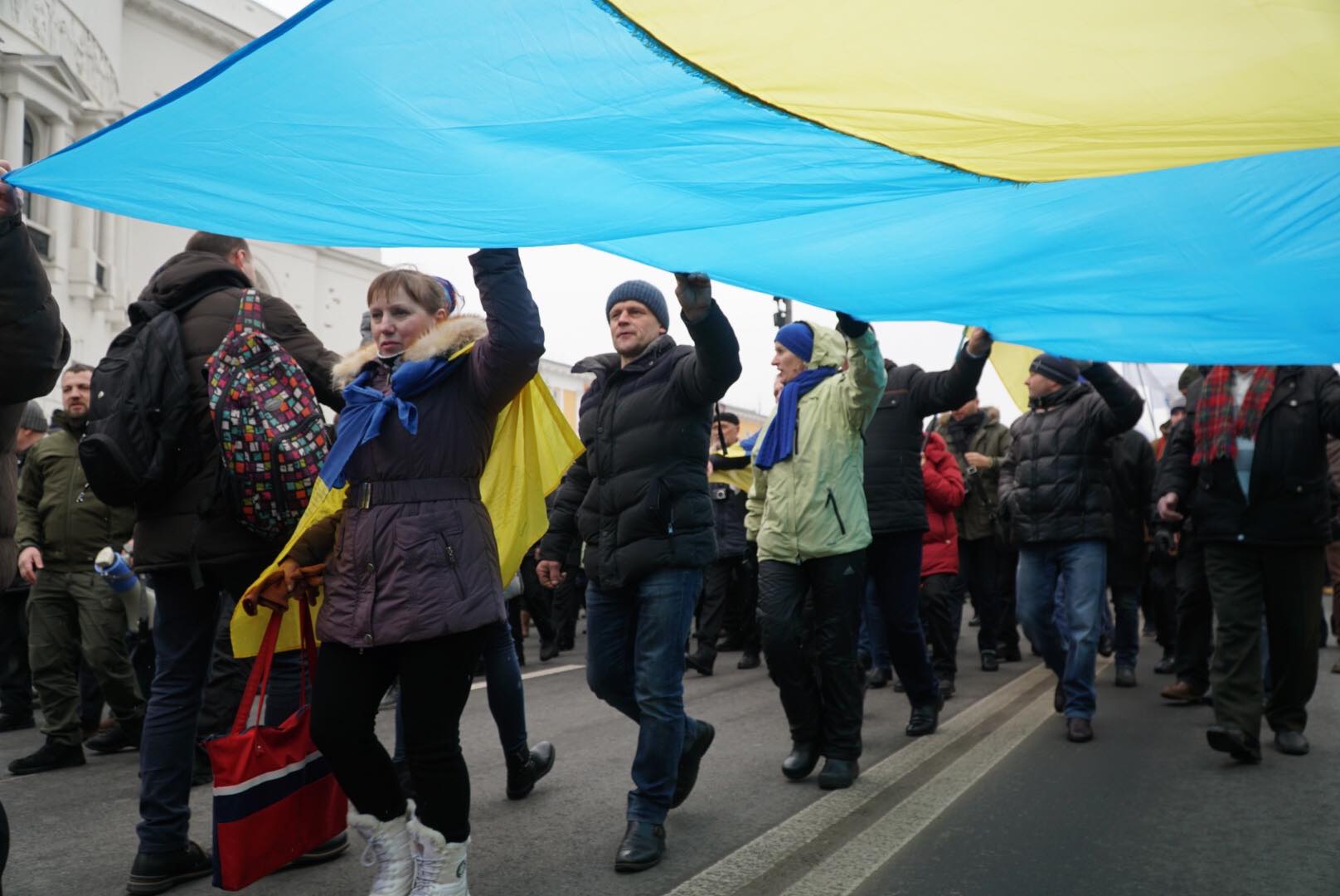 Акция началась в парке имени Тараса Шевченко. затем участники марша направились к Европейской площади по улице Владимирская.