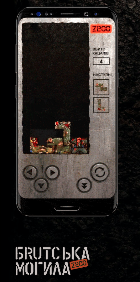 Новая версия тетриса называется "БRUТСКАЯ МОГИЛА z200", которая является отсылкой к новой свастике россиян - Z - и к "грузу 200", которым обозначают убитых солдат.