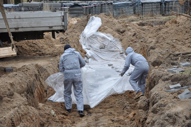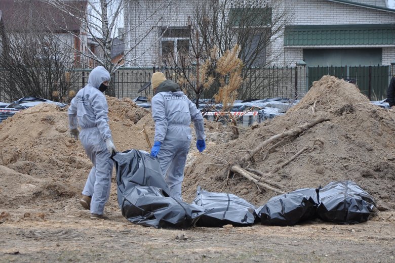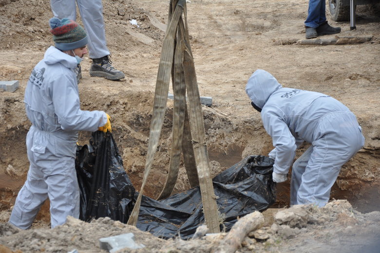 В Буче Киевской области продолжается эксгумация тел погибших мирных жителей во время российской оккупации, закопанных в братской могиле.