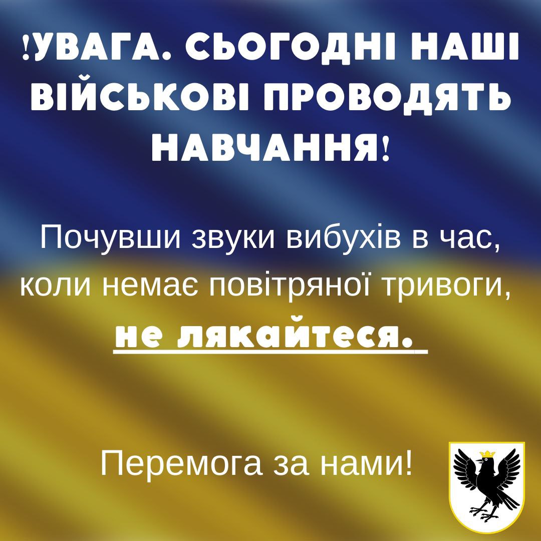 Светлана Онищук предупредила, что 13 апреля в Ивано-Франковской области военные будут проводить учения и призвала жителей не пугаться громких звуков, когда они будут звучать не во время воздушной тревоги.