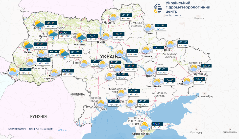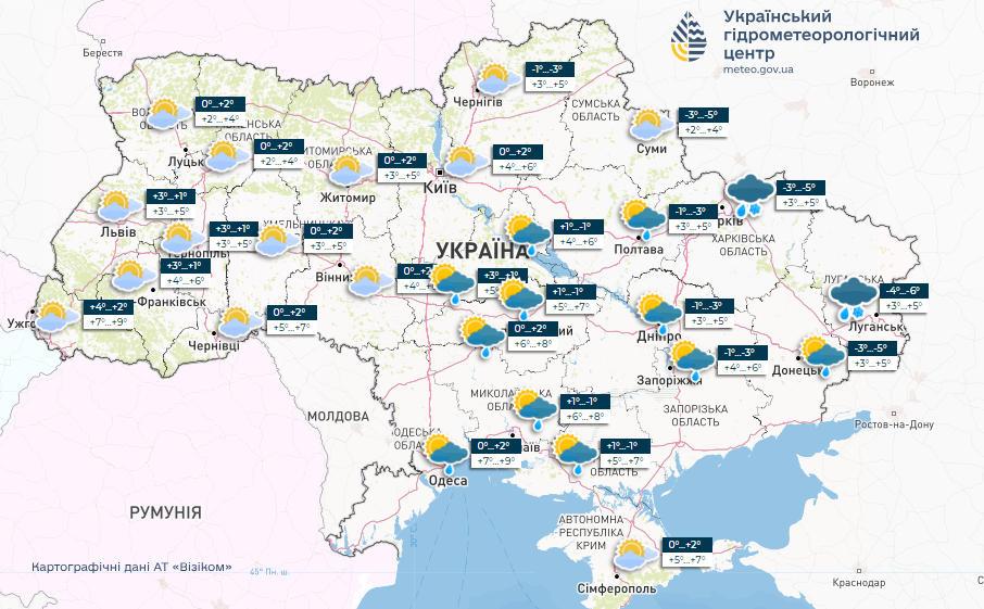 Мокрый снег и морозы: карта погоды в Украине до 20 февраля