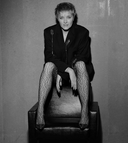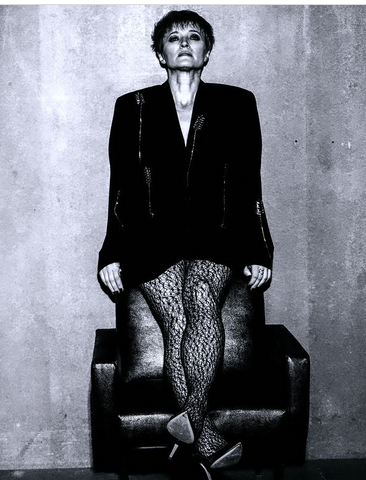 На стильных черно-белых фото Трофимцева предстала в раскрепощенном образе: в сетчатых колготках, в одном жакете и на каблуках.
