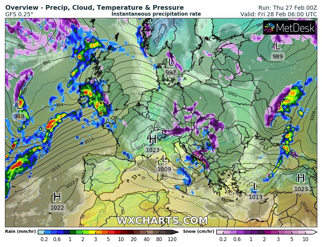 По ее словам, в ночь на пятницу, 28 февраля, циклон расположится над Левобережной Украиной, поэтому дожди и мокрый снег ожидаются в центральных областях (кроме Винницкой), в южной части Украины и на Востоке. Осадки будут сопровождаться сильным ветром.