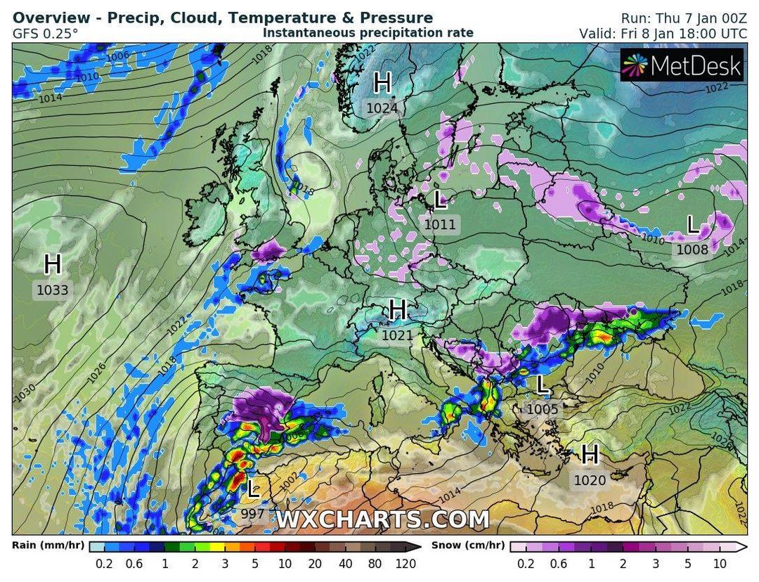 В пятницу, 8 января, в Украине ожидается ухудшение погодных условий - часть страны накроют осадки, преимущественно в виде дождя, местами - мокрый снег.