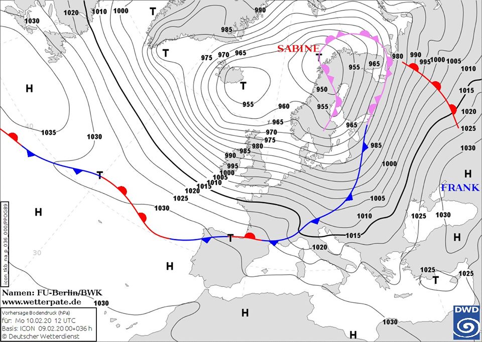 Синоптик обращает внимание на мощный циклон Sabine над северными районами Норвегии и Швеции, который станет причиной штормового, местами ураганного ветра и сильных осадков во многих странах Европы.