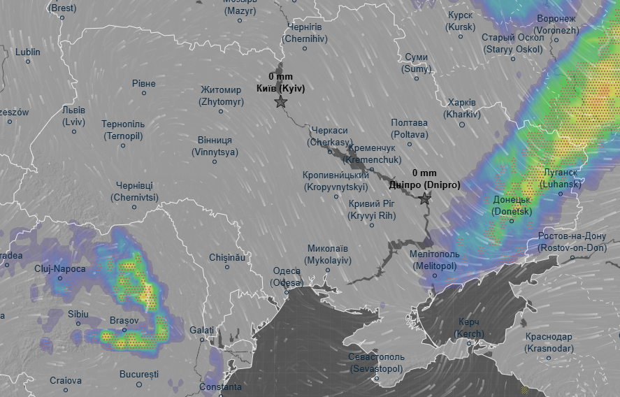 Об этом свидетельствуют данные метеоресурса Ventusky.