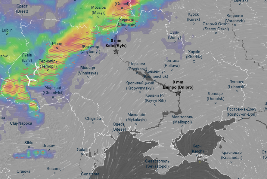 Сильные ливни и грозы, местами с градом, накрыли западные области - в отдельных районах уже выпало до 22 мм осадков. Грозовой фронт протянулся вдоль с запада на северо-запад Украины - грозы гремят в Ровенской, Житомирской, Хмельницкой, Львовской областях и на Закарпатье.