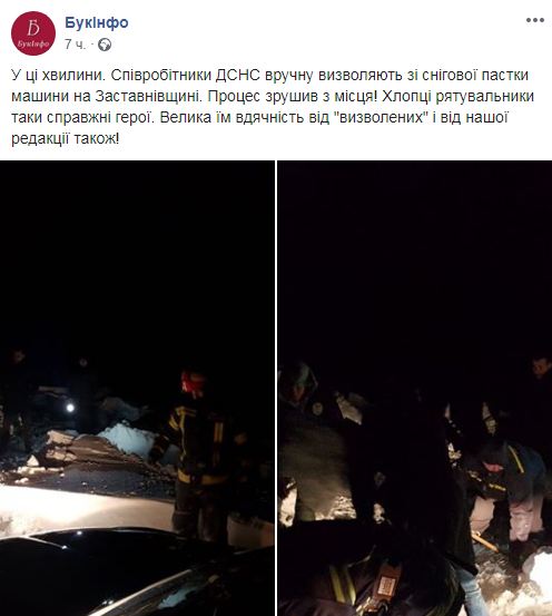 Ближе к полуночи силами ГСЧС и людей из окрестных сел удалось разблокировать автомобили и освободить их из снежного плена.