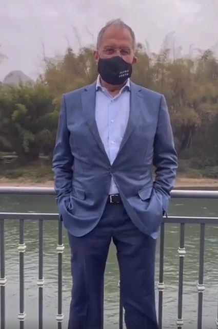 Министр иностранных дел России Сергей Лавров засветился в маске от коронавируса с нецензурной надписью во время визита в Китай.
